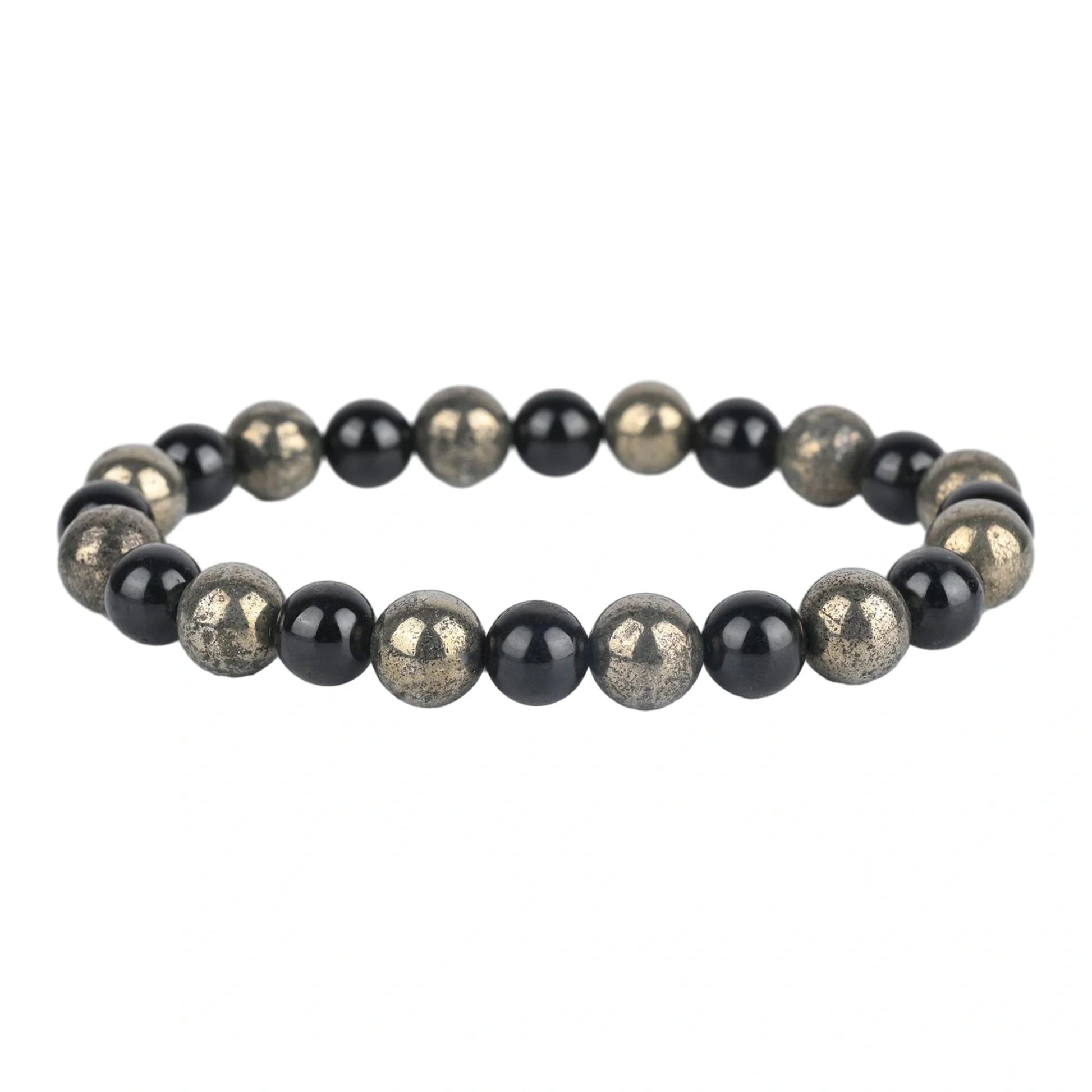 Natural Pyrite & Tourmaline Bracelet for Wealth, Power & Protection