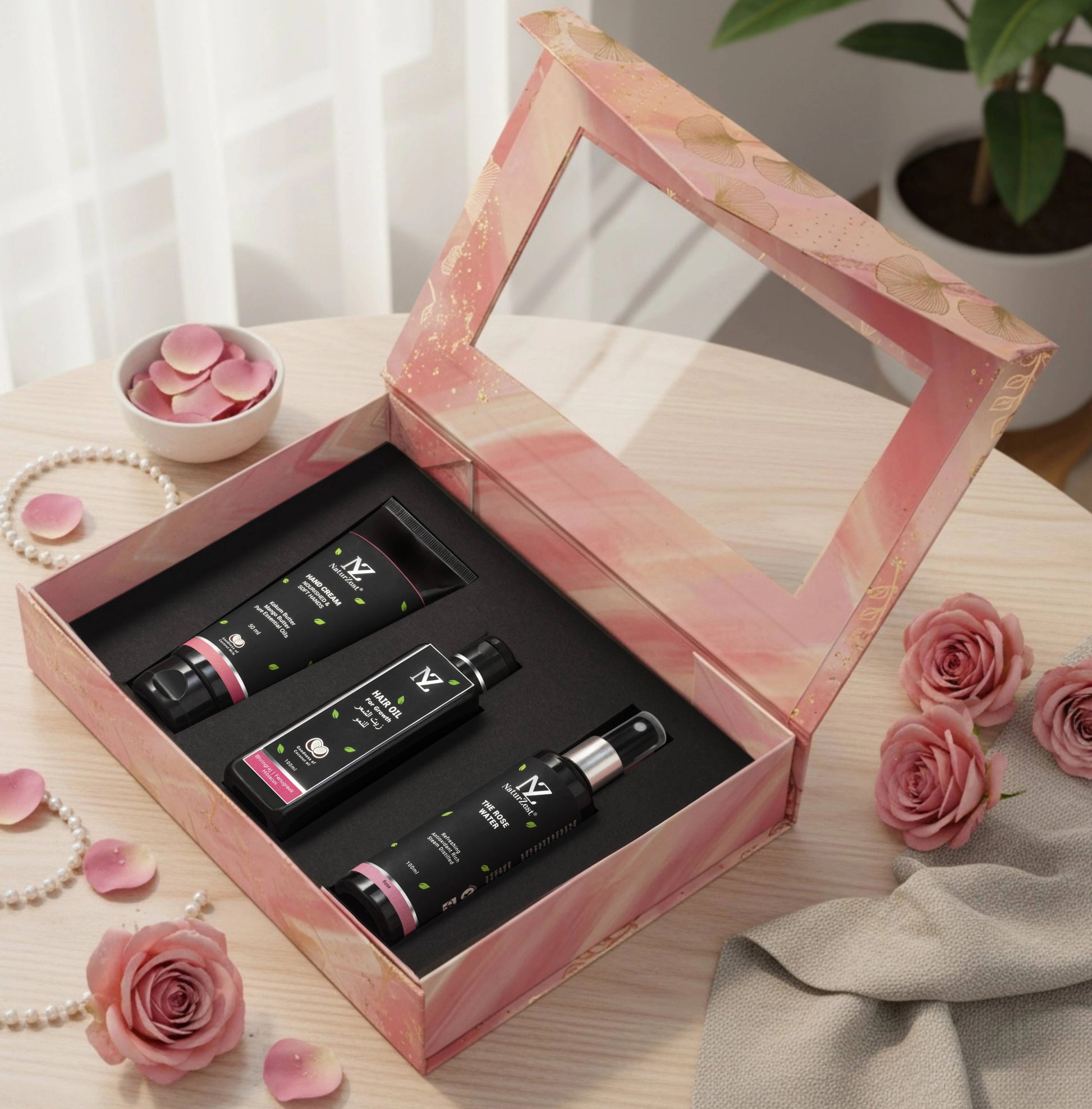NaturZest Hand Cream, Hair Oil for Growth & Rose Water Mist